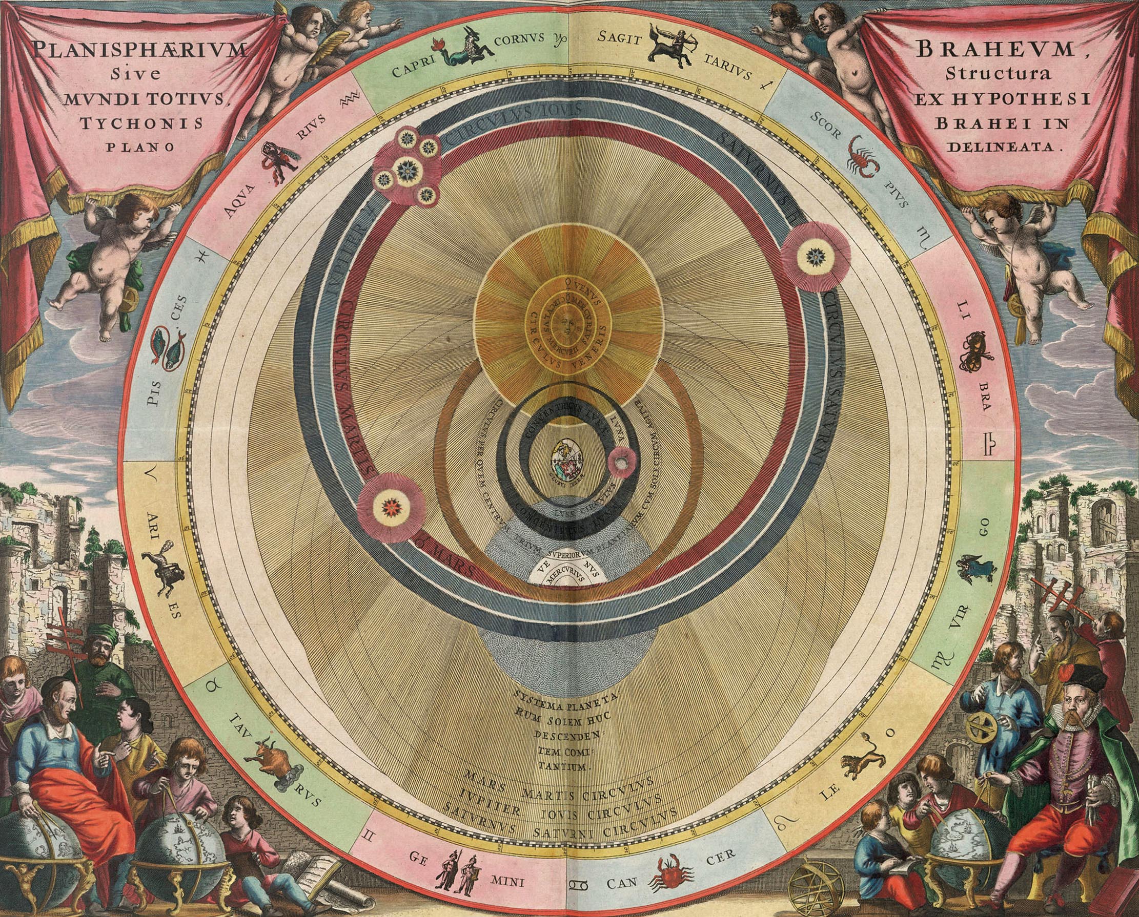 Figure 3.10 Tycho’s geo-heliocentric model, showing the Moon and Sun orbiting Earth, with the other planets orbiting the Sun.