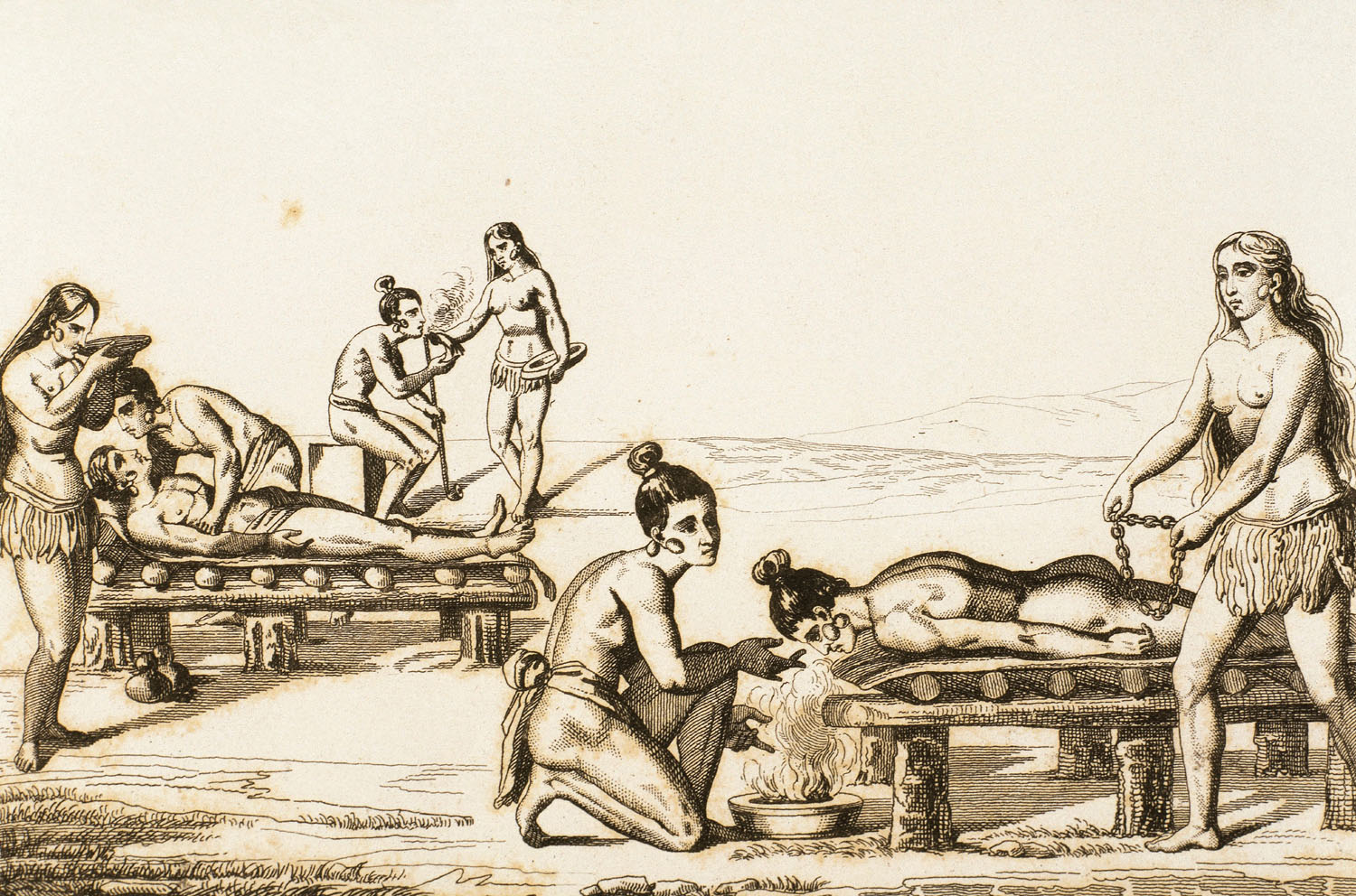 Sixteenth-century Native Americans in Florida practice several healing techniques, including smoking tobacco.