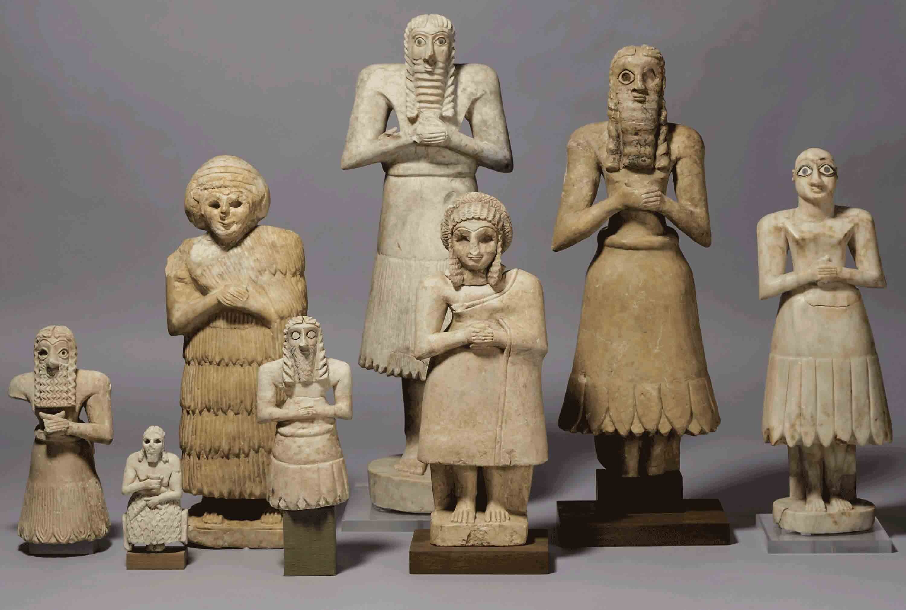 VOTIVE FIGURES During the Early Dynastic period, temples remained the most important urban institution, and individuals and families continued to make offerings to the deities enshrined in them. Such gifts often took the form of carved stone plaques, metal objects, and votive statues. Placed in a cult room where rituals were held, votive statues allowed their donors to be in the presence of the divine. In return for these gifts, the donors expected the god or goddess to protect them from harm and bring them good fortune.