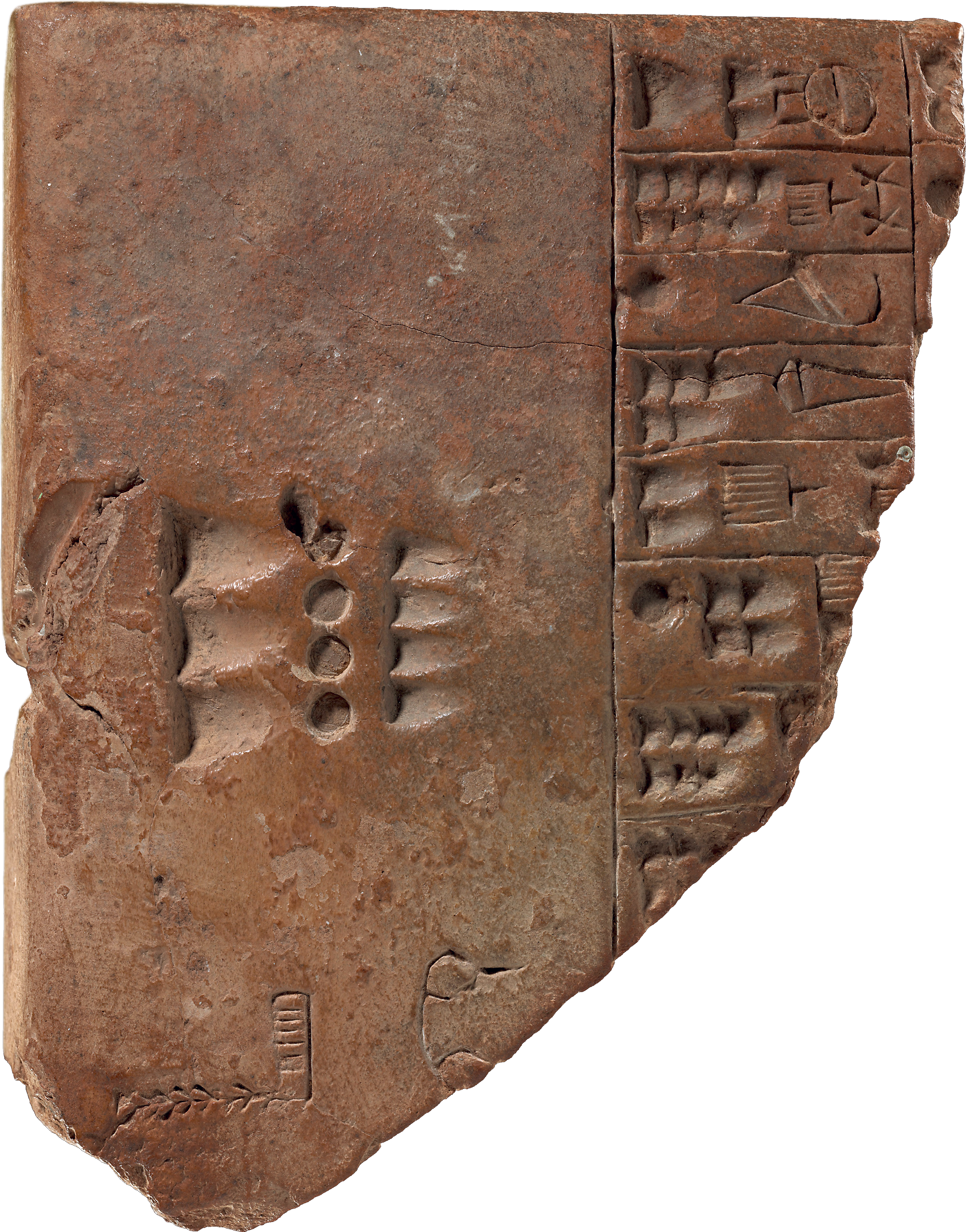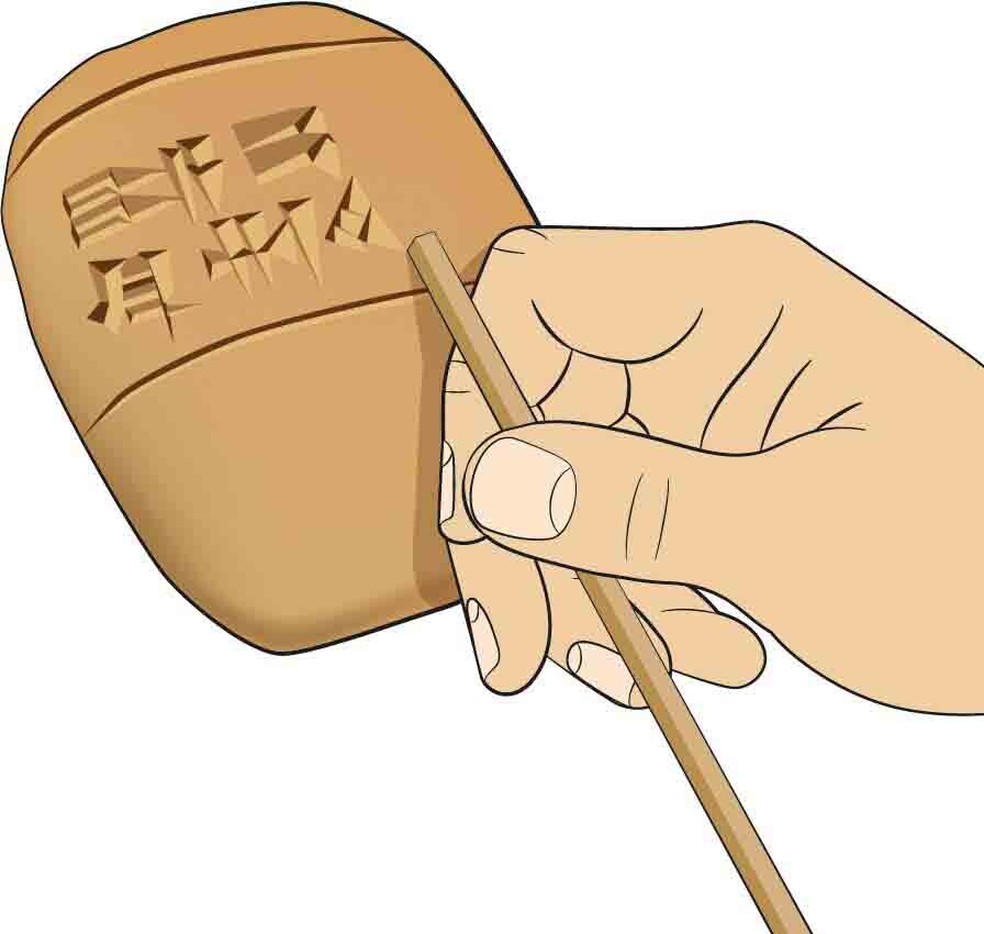 Mesopotamians used a reed stylus with a triangular tip to inscribe or impress symbols into moist clay tablets (Fig. 3.5). This form of writing is called cuneiform, which means “wedge-shaped” in Latin. After being inscribed, tablets were either dried in the sun or—if they were particularly important—fired in a kiln. They are perhaps the most durable written documents ever created.