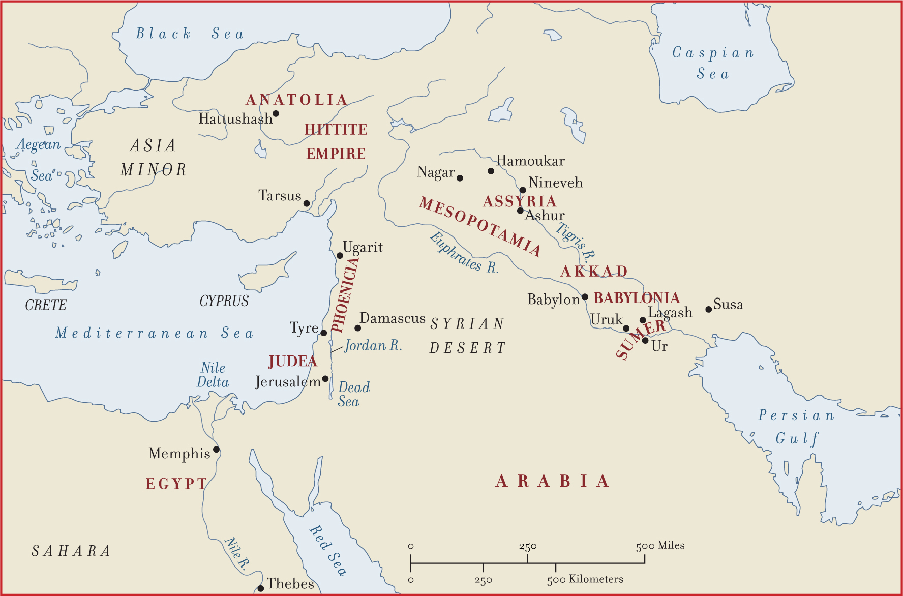 FIGURE 1.2The ancient Near East, showing the location of the main cities and civilizations of Mesopotamia and Egypt.