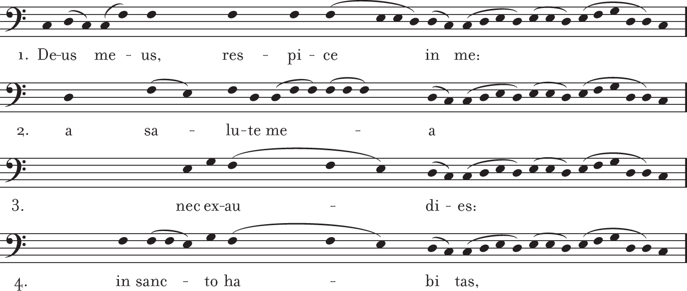 EXAMPLE 2.1 The second phrases of the first four verses of the Tract Deus, Deus meus