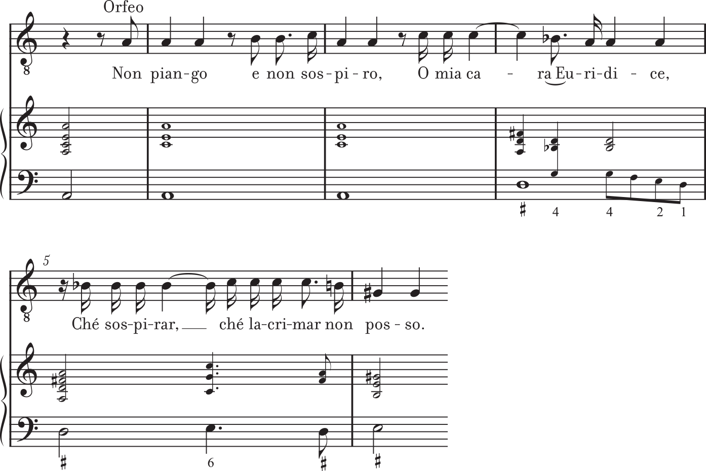 I do not weep and I do not sigh, O my dear Eurydice, for to sigh, to weep I cannot.