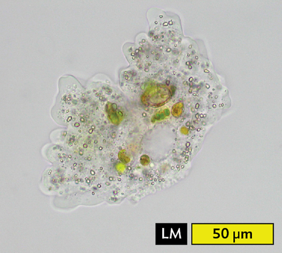 Our simple definition of a microbe, however, leaves us with contradictions. Most single-celled organisms require a microscope to render them visible, and thus they fit the definition of “microbe.” Nevertheless, some protists and algae are large enough to be seen with the naked eye. An example is the ameba Pelomyxa, which can span several millimeters (Figure 1.1A). Some amebas can cause meningitis; others can harbor thousands of Legionella bacteria, the cause of legionellosis, a severe form of pneumonia.