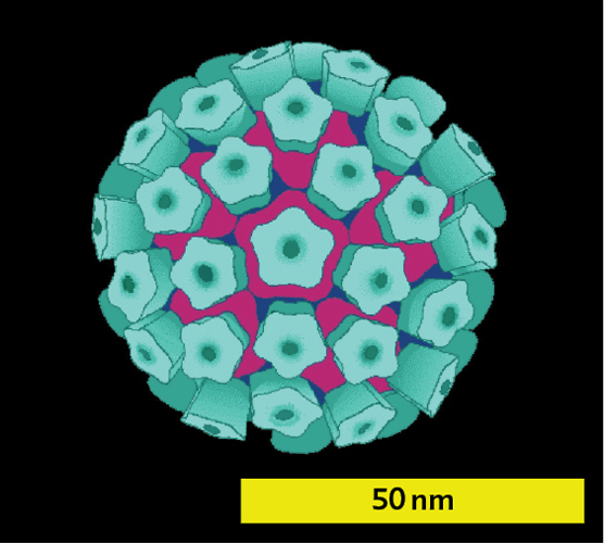 Viruses are noncellular microbes. A virus particle contains genetic material (DNA or RNA) that takes over the metabolism of a cell to generate more virus particles. Some viruses, such as papillomaviruses (Figure 1.1D), consist of only a few molecular parts. Other viruses, such as herpesviruses, show complexity approaching that of a cell, although none are fully functional cells. Engineered viruses are used as tools for gene therapy. For example, in 2017 the Food and Drug Administration (FDA) approved a nonpathogenic derivative of the human immunodeficiency virus (HIV) for gene delivery to the white blood cells of a child, enabling the child’s immune system to overcome leukemia.