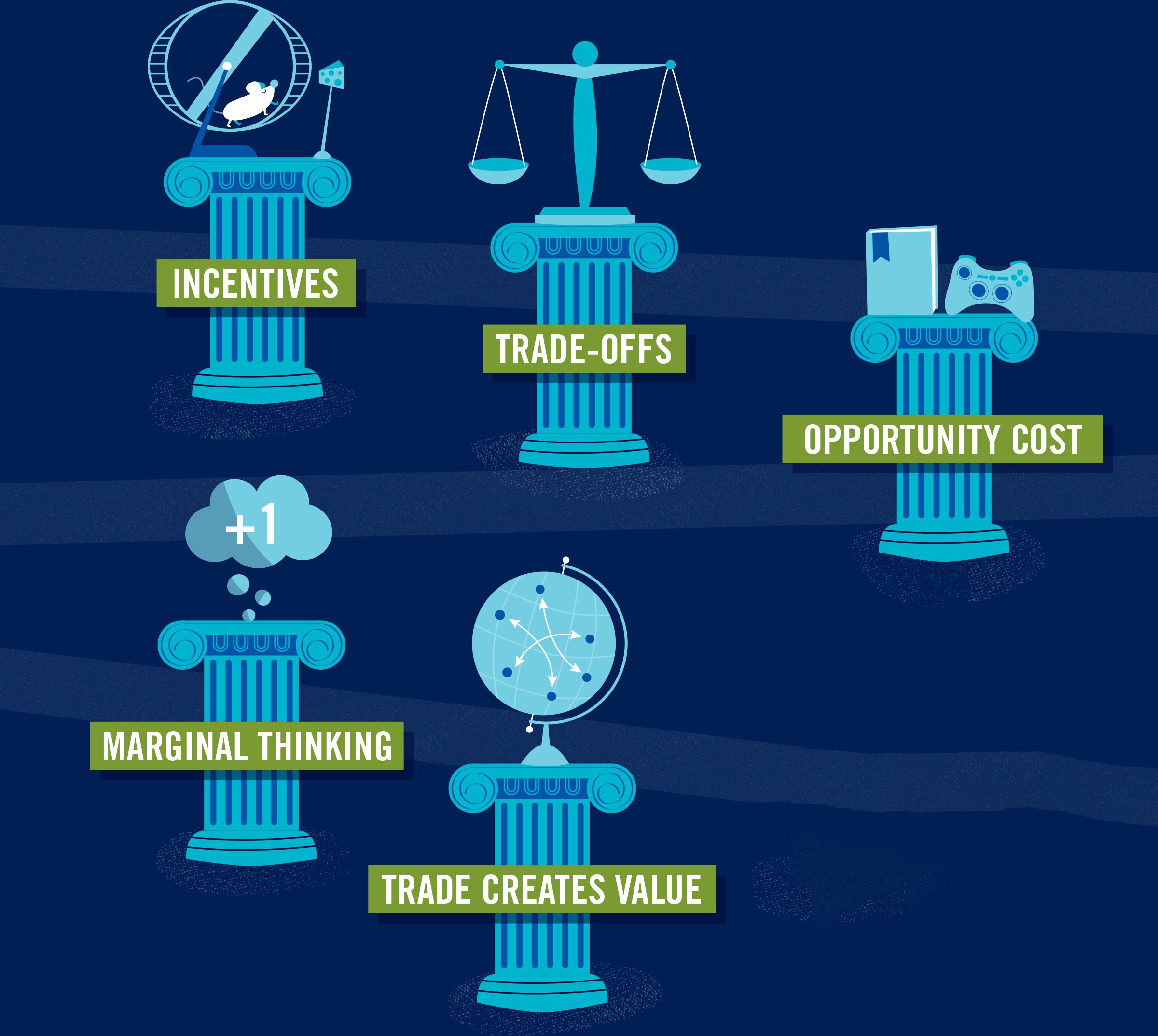 In this book, we study five foundations of economics—incentives, trade—offs, opportunity cost, marginal thinking, and the principle that trade creates value. Once you have mastered these five concepts, even complex economic processes can be reduced to smaller, more easily understood parts. If you keep these foundations in mind, you’ll find that understanding economics is rewarding and fun.