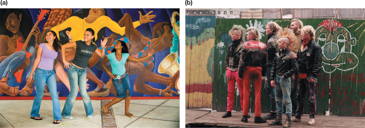 (a) Adolescents develop strong friendships with peers who share similar interests and values. (b) Outside observers might tend to place the young men in this peer group into a single clique, “punks,” and would tend to react to all of them in similar ways. Each adolescent, however, might view himself as an individual.