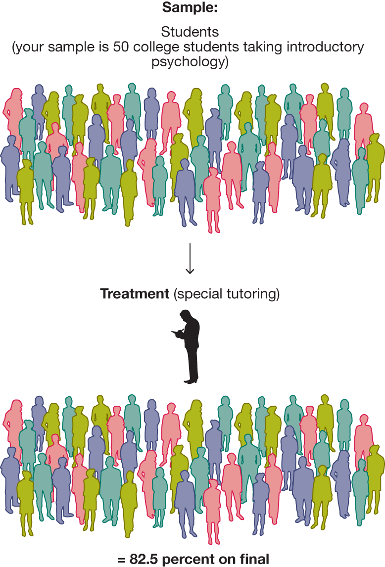In this study, your entire sample is one experimental group that receives the treatment of special tutoring. You determine the group’s average score on the final exam, but you cannot compare that result with the result from a control group.