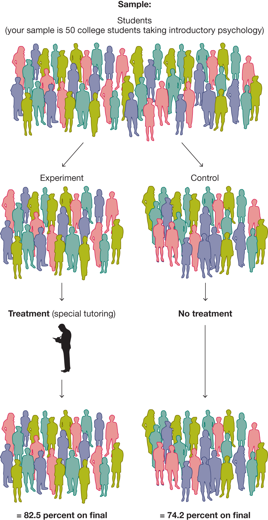 Internal validity is the degree to which the effects observed in an experiment are due to the independent variable and not to confounds. For data to be internally valid, the experiment must be well designed and well controlled (FIGURE 2.27). That is, the participants across all groups must be as similar as possible, and there must be a control group (FIGURE 2.28). Only by comparing experimental groups to control groups can you determine that any changes observed in the experimental groups are caused by the independent variable and not something else (for example, practice or the passage of time). Internal validity follows from the principles of the experimental method described in Sections 2.7 and 2.8, such as random assignment to conditions, adequately large sample sizes, and control over known and unknown confounds.