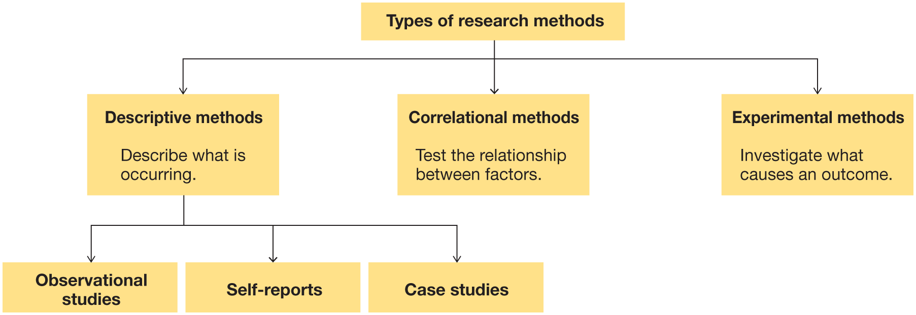 There are three basic types of descriptive research methods: case studies, observations, and self-report methods and interviews.