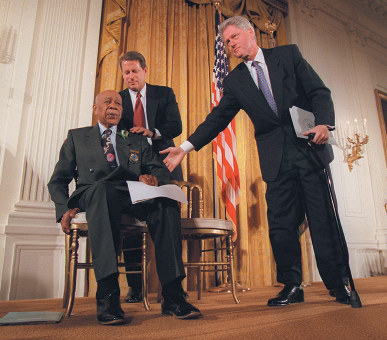 Between 1932 and 1972, the U.S. Public Health Service and the Tuskegee Institute, in Alabama, studied the progression of untreated syphilis in African American men. Without their knowledge, 400 men with syphilis were randomly assigned to receive treatment or not. In 1997, the U.S. government officially apologized to the participants and their families. Here, President Bill Clinton and Vice President Al Gore appear at a news conference with participant Herman Shaw.