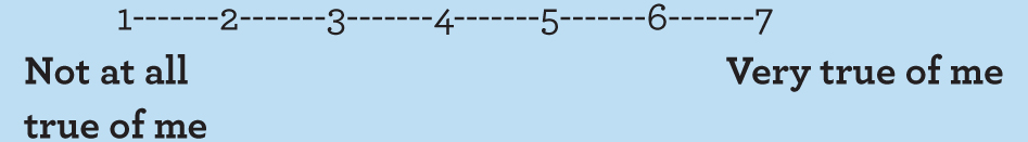 Scoring Instructions: Add up your answers to items 1, 3, 4, 5, 6, 7, 8, 9, 10, and 12. Reverse-score your answers to items 2 and 11 (that is, convert 1=7, 2=6, 3=5, 4=4, 5=3, 6=2, and 7=1). Then add those scores to the total. In one large sample of people who took this test, the mean was 54.2. Scores do not appear to differ, on average, between women and men or according to age. Scores below 50 would typically be categorized as “strategic optimists”; scores above 60 would be categorized as defensive pessimists.