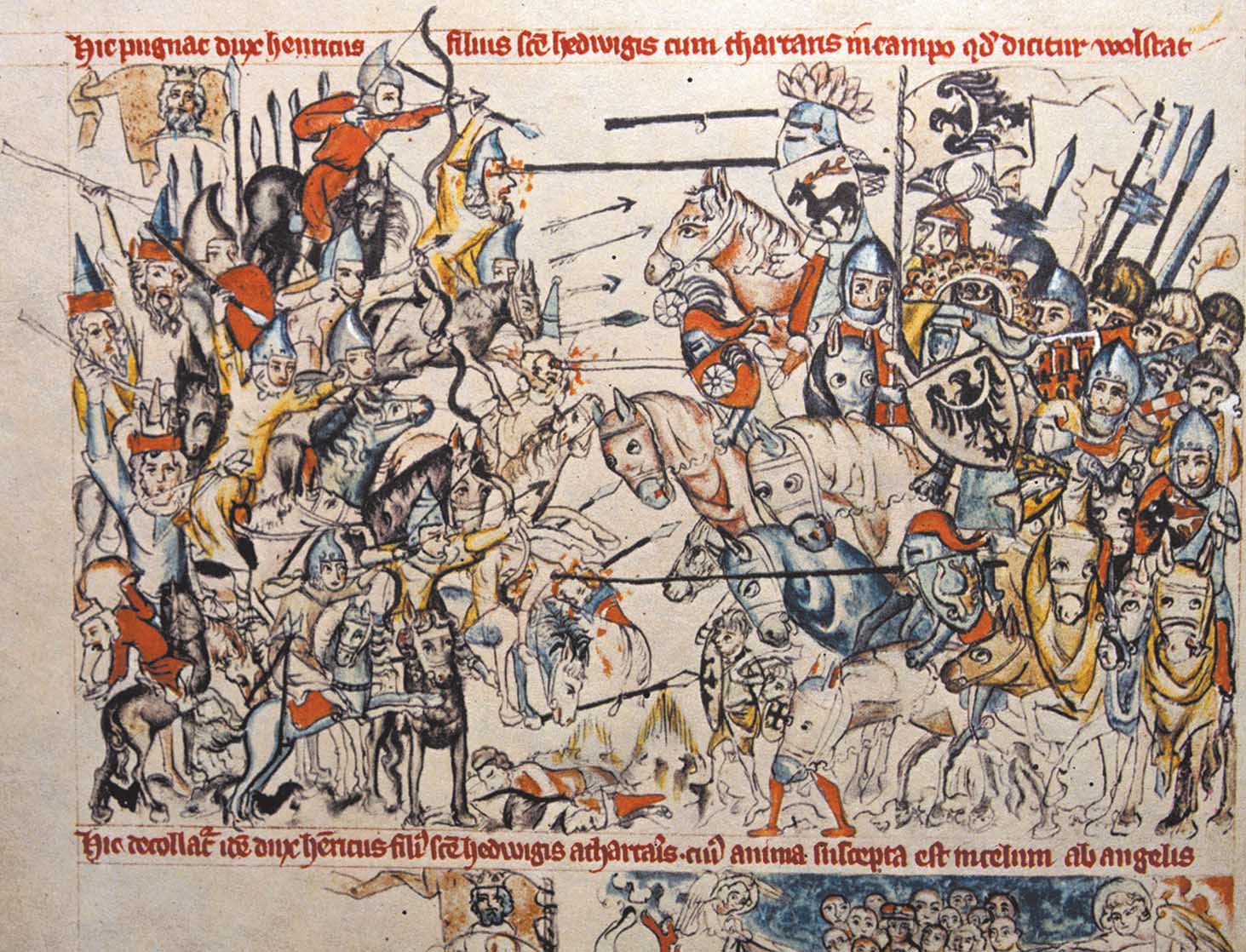 For the first time in centuries, China was reunited, although under Mongol rule. It was also connected to western and central Asia in ways unprecedented in its long history, because Genghis Khan had brought crucial commercial cities and the Silk Road trading posts (Tashkent, Samarkand, and Bukhara) into his empire. Building on these achievements, one of his sons, Ögedei (EHRG-uh-day), laid plans for an even farther-reaching expansion of Mongol influence. Between 1237 and 1240, the Mongols under his command conquered the Rus’ capital at Kyiv and then launched a two-pronged assault directed at the rich lands of the European frontier. The smaller of the two Mongol armies swept through Poland toward Germany; the larger army went southwest toward Hungary. In April 1241, the smaller Mongol force met a hastily assembled army of Germans and Poles at the battle of Legnica in southern Poland, where the Mongols were driven back at the cost of many lives on both sides. Two days later, the larger Mongol army annihilated the Hungarian army at the river Sajo. It could have moved even deeper into Europe after this important victory, but it withdrew when Ögedei Khan died in December of that year.