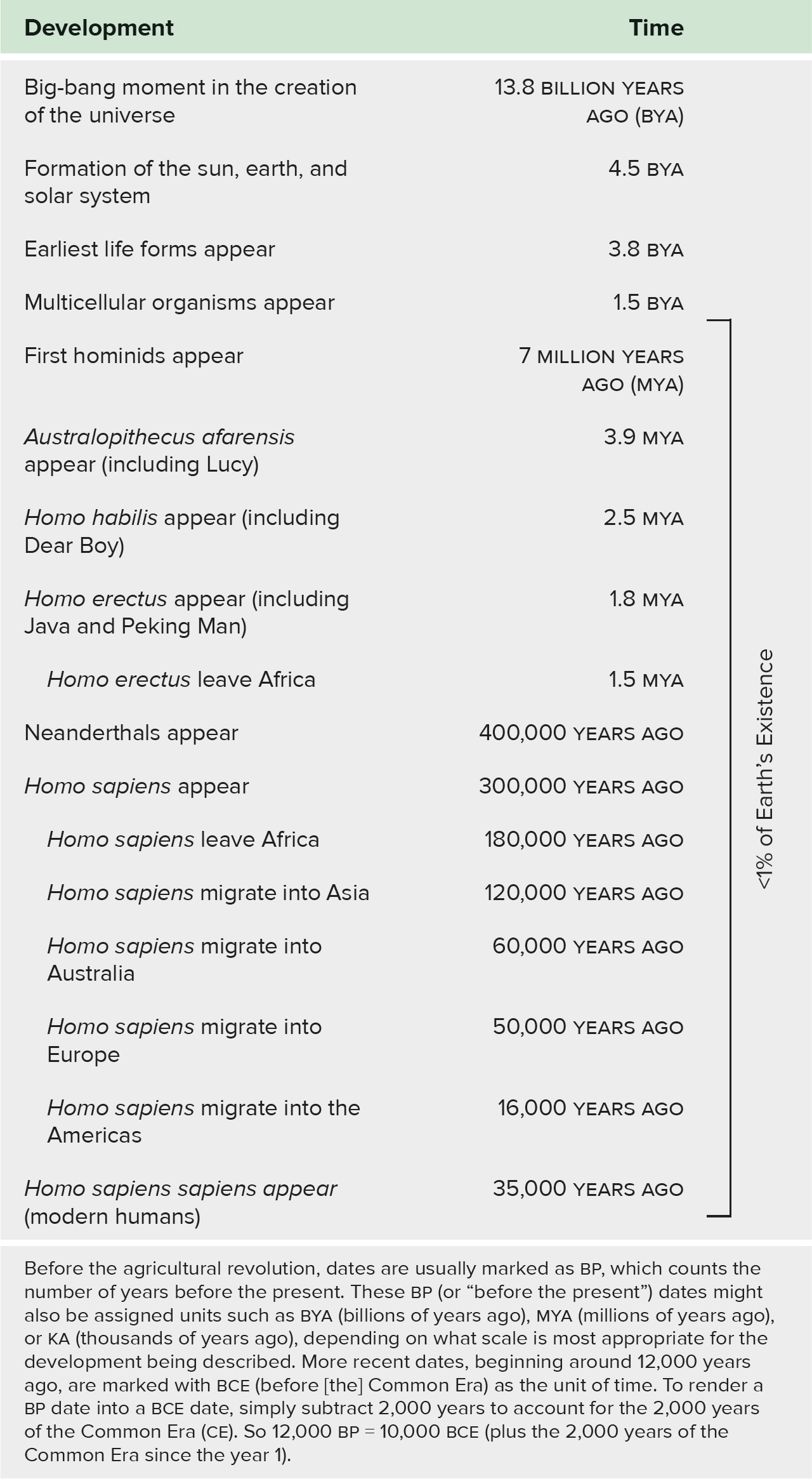 Table 1.2 Human Evolution |