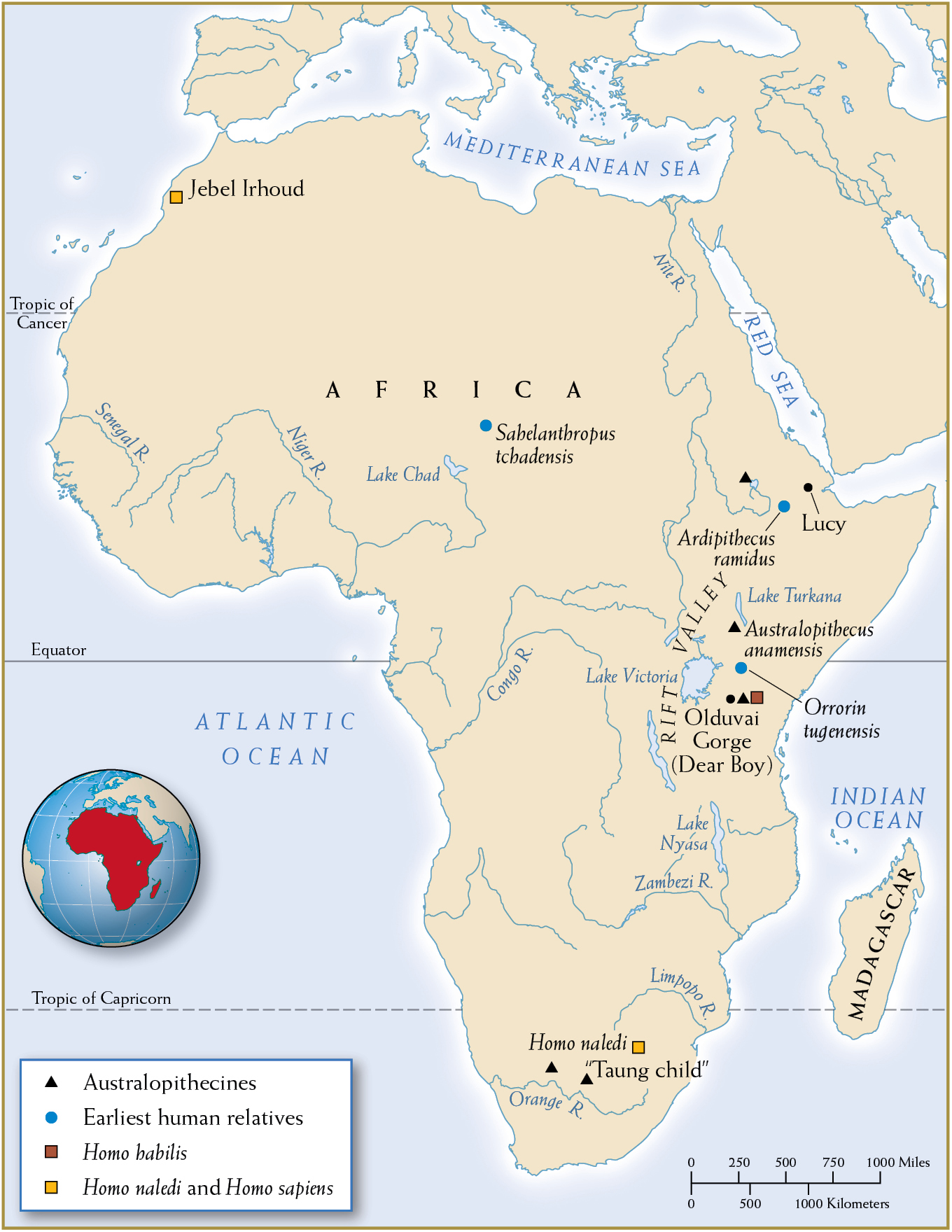 Map 1.1Early Hominins