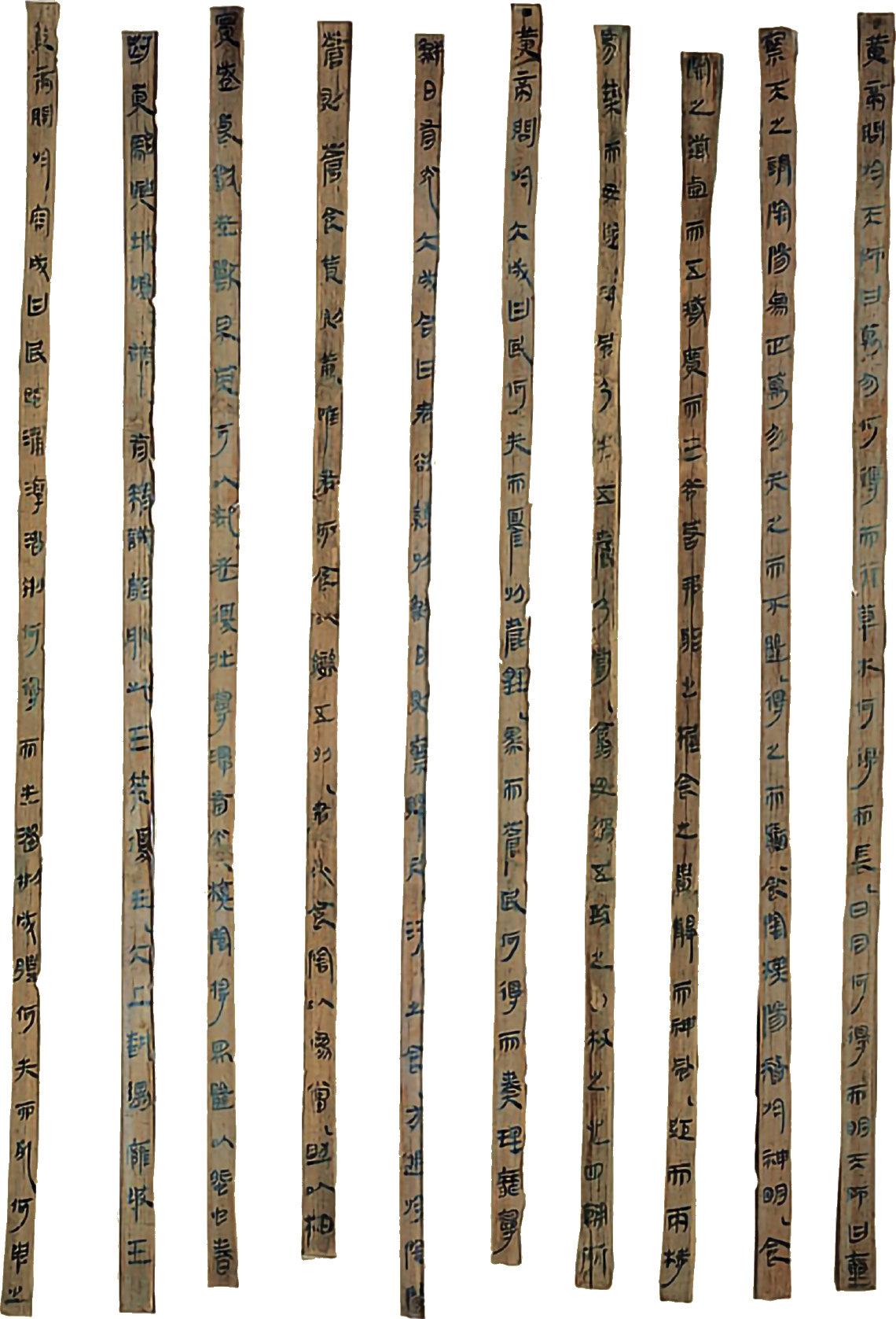 Apart from the philosophical discourse of the “hundred masters,” with its far-reaching impact across Chinese society, elites and commoners alike tried to maintain stability in their lives through religion, medicine, and statecraft. The elites’ rites of divination to predict the future and medical recipes to heal the body found parallels in the commoners’ use of ghost stories and astrological almanacs to understand the meaning of their lives and the significance of their deaths. Elites recorded their political discourses on wood and bamboo slips, tied together to form scrolls. They likewise prepared military treatises, ritual texts, geographic works, and poetry. The growing importance of statecraft and philosophical discourse promoted the use of writing, with 9,000 to 10,000 graphs or signs required to convey these elaborate ideas.